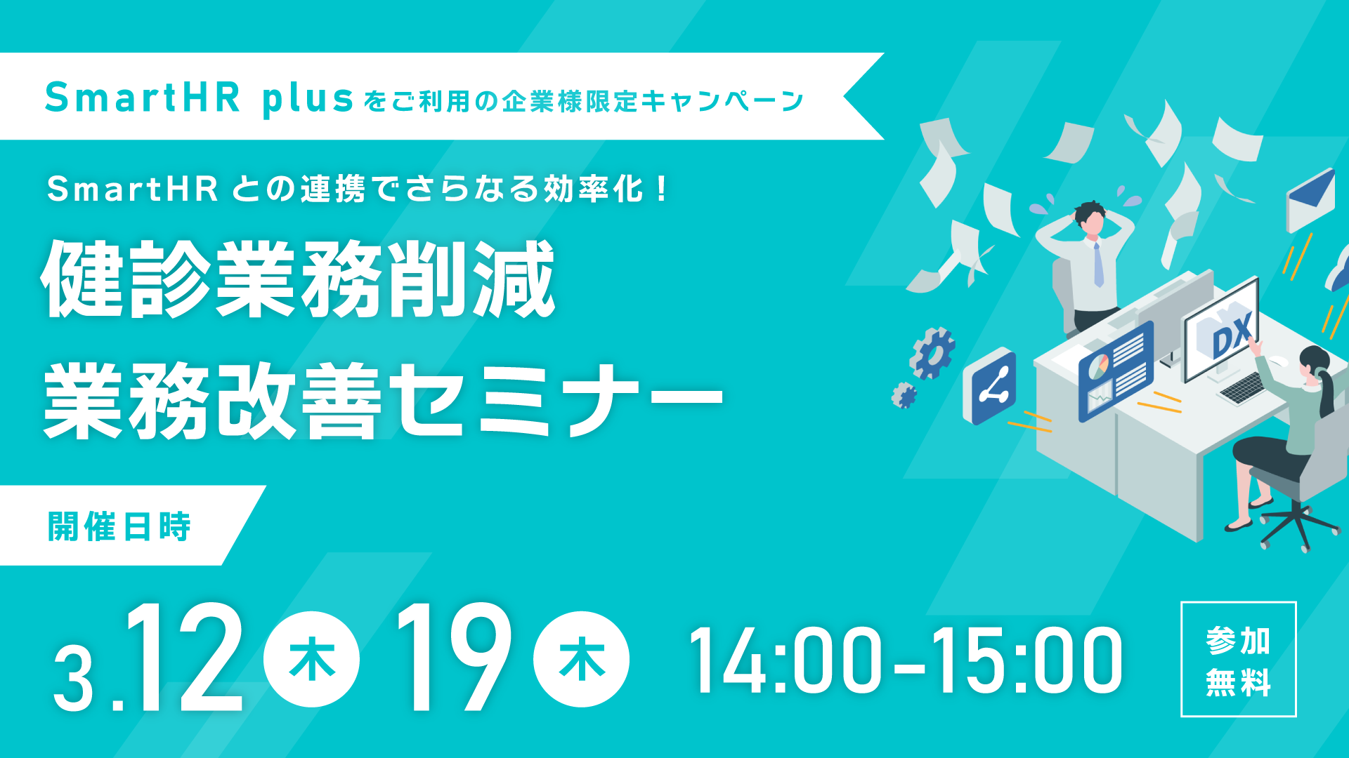 本セミナーでは、SmartHRをご利用中の企業様向けに、けんさぽでできる健診業務の効率化と健康経営優良法人認定取得に向けた実務対応のポイントを分かりやすく解説します。